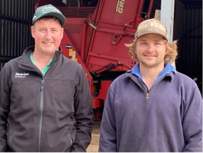 Scott Merrett from Legacy Farm in Penola, South Australia, worked with Nutrien Ag Solutions sales agronomist, Henry Smith, on a trial on 10 hectares of Innovator potatoes in December 2023. Utrisha N was applied about two months after planting, at approximately 50% row closure, at a rate of 333g/ha.