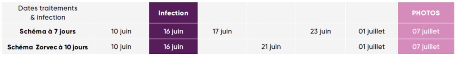 Ci-dessous, vous trouverez une synthèse des données de traitement pendant la phase de croissance rapide. Une contamination artificielle de mildiou a été réalisée le 16 juin sur toutes les modalités.