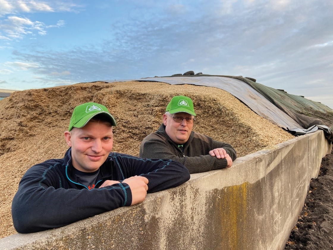 We hebben in 2020 rond 25 april gezaaid en in de 1e week van oktober gehakseld. We hebben ook gras ondergezaaid. Ondanks de vorstschade dit voorjaar, oogsten we dit jaar tussen de 50 en 55 ton per ha. De 1e voederwaarde-analyse (Eurofins) laat weer een uitstekende voederwaarde zien: 36,3% ds, 1019 VEM en 419 gram zetmeel.