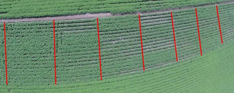 Proeven in het verleden hebben reeds duidelijk de sterkte van Vydate op aaltjes aangetoond. Onderstaande dronefoto van een proef in Nederland in 2019 laat duidelijk het verschil zien tussen verschillende behandelingen.