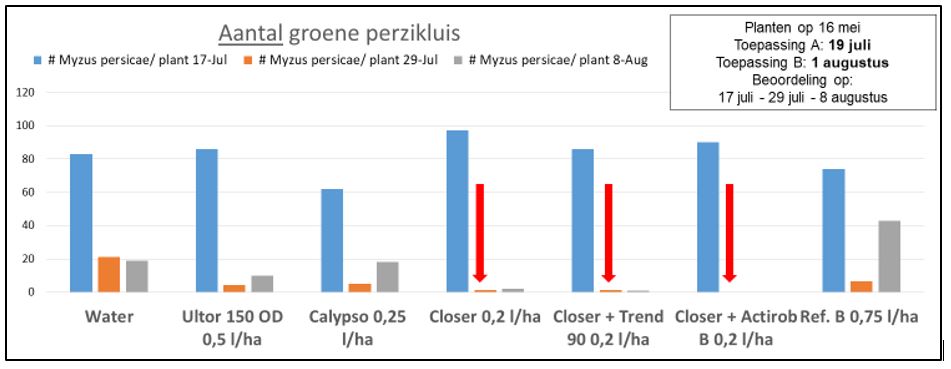 Ook op melige koolluis presteert CLOSER bijzonder goed (Rumbeke, 2019) :