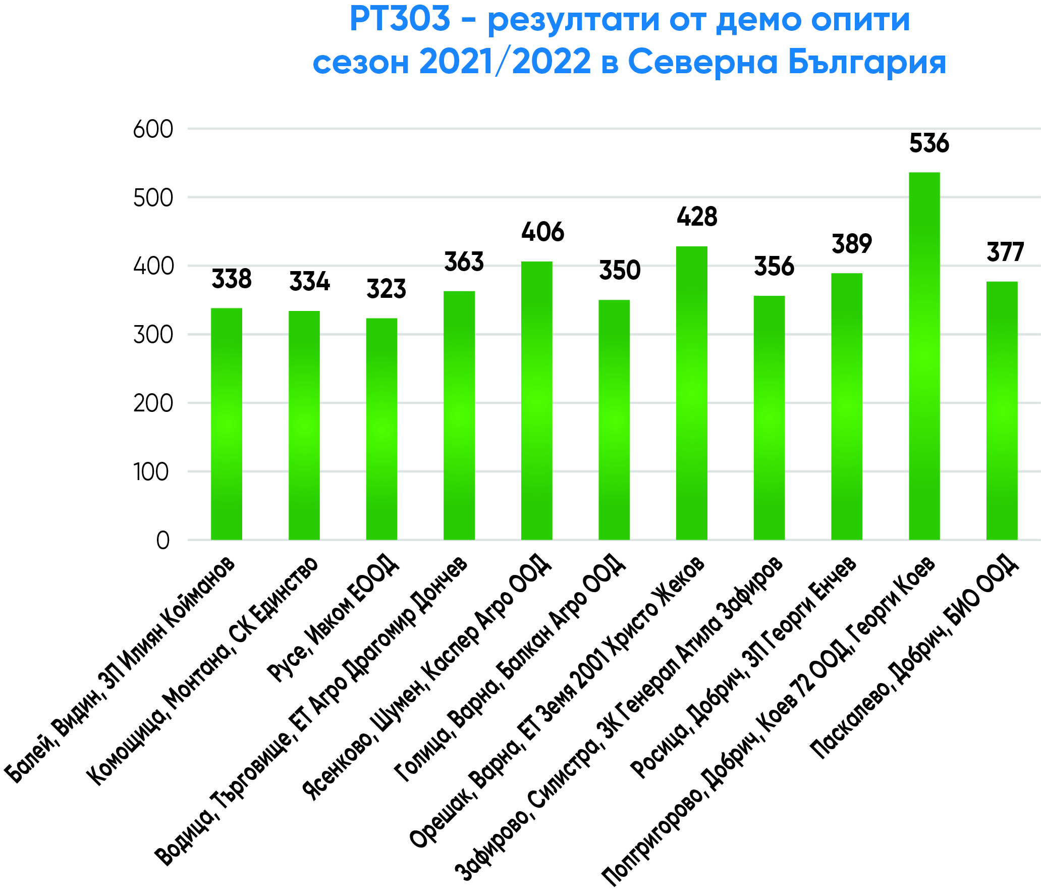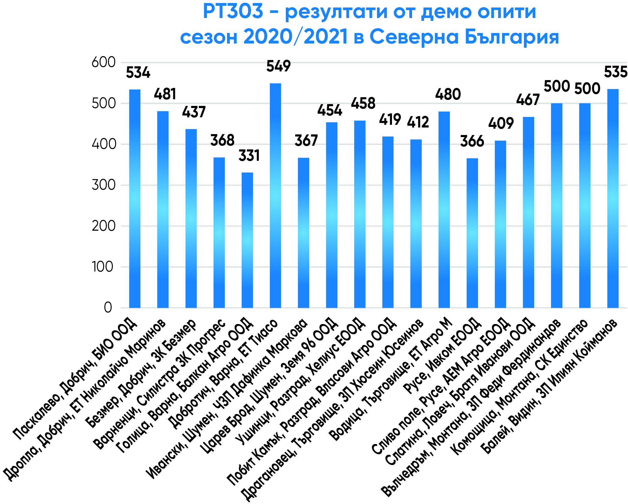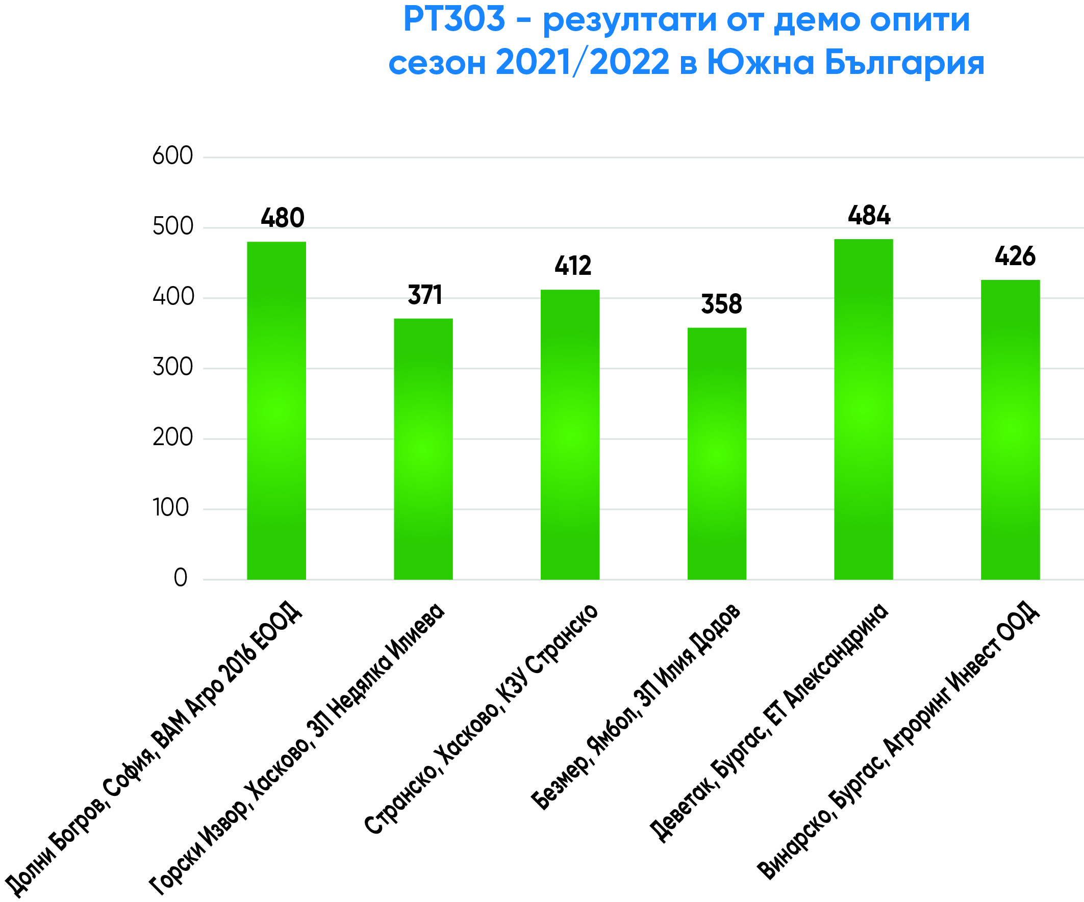 с изключително високо ниво на толерантност на болестта склеротиния. РТ303 е средноранен, с много висок и стабилен добивен потенциал, изключително гъвкав и адаптивен за отглеждане в цялата страна, с високо маслено съдържание (над 45%-46%), много висока толерантност на болестта склеротиния, разпукване на шушулките, на полягане, на студ и ниски температури, толерантен на TuYV вируса (официално сертифициран във Франция). РТ303 е с много добро представяне в официалните опити в Германия и Швеция (включително при по-студени климатични условия). РТ303 е включен в официалния препоръчителен лист на хибриди рапица за отглеждане на организацията AHDB във Великобритания и вече се отглежда в държави с дългогодишни традиции в тази култура – Германия, Великобритания, Чехия, Полша, Румъния, Дания и Унгария.