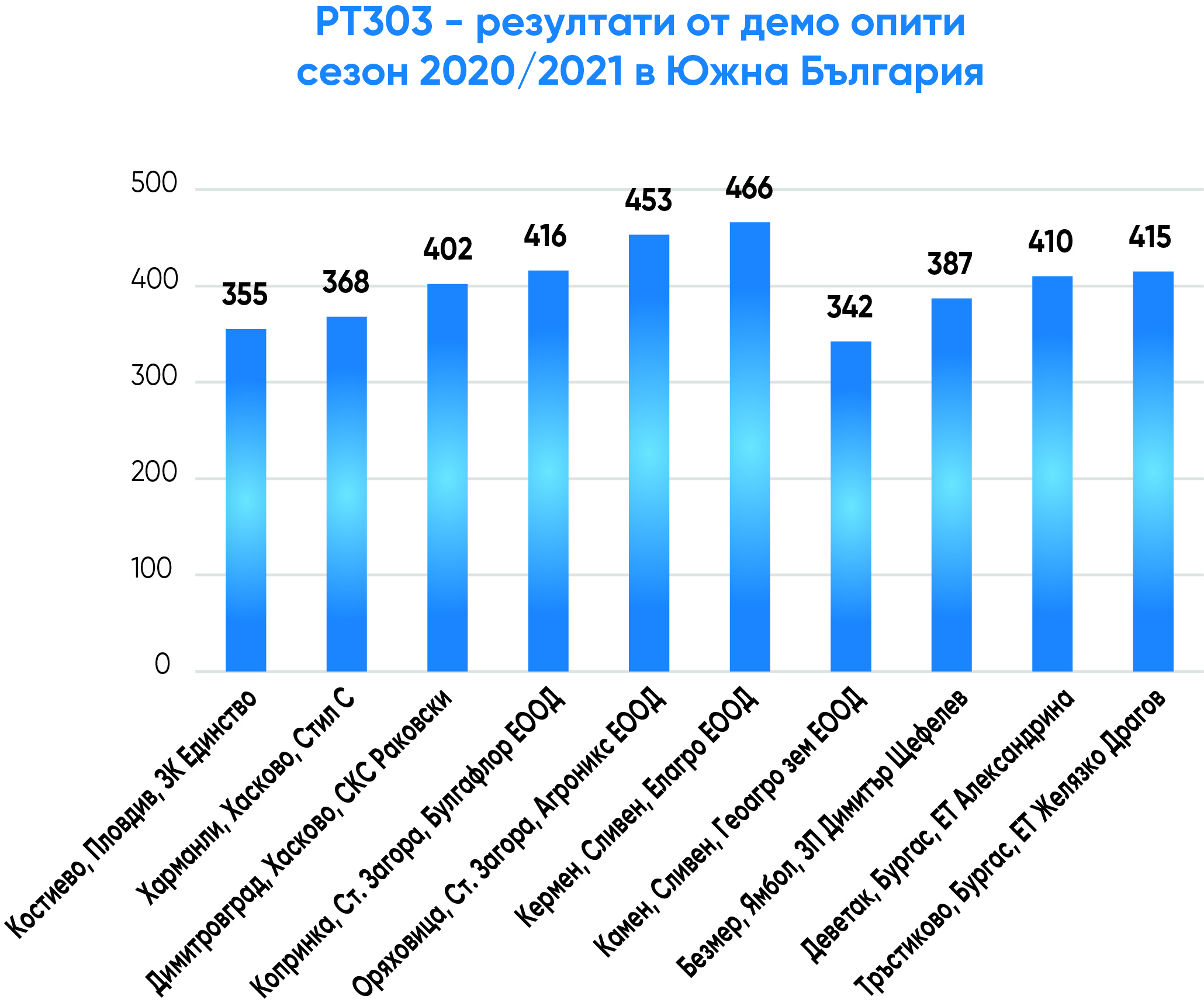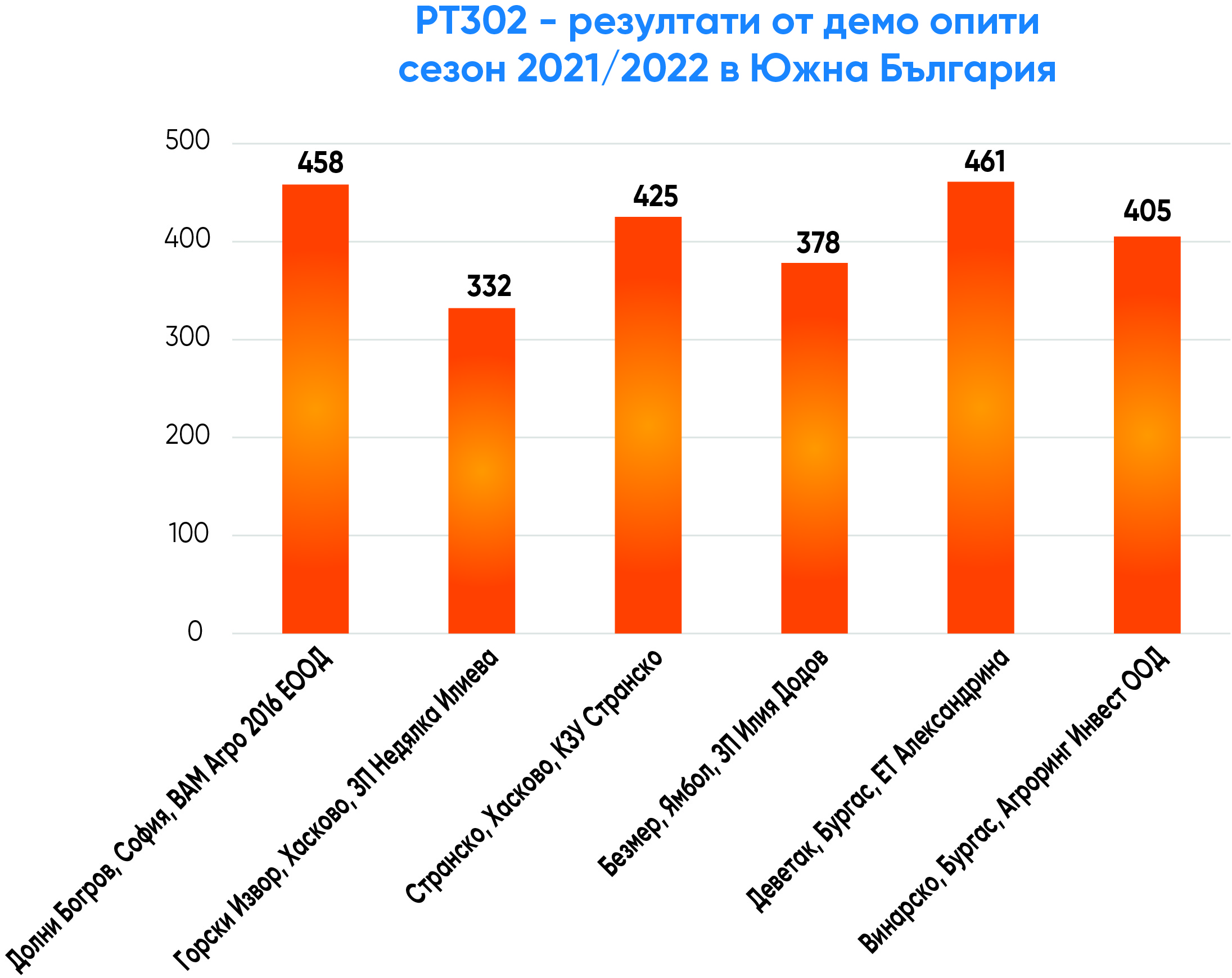 Вторият нов хибрид също е конвенционален – РТ302, средноранен, с много висок и стабилен добивен потенциал, широкоадаптивен, високо ниво на устойчивост на разпукване на шушулките, толерантен на болестта фома, с високо ниво на толерантност на ниски температури. С много добро представяне в официални опити в Германия последните три сезона и вече внедрен в практиката в Германия, Чехия и Полша с отлично представяне срещу най-добрите конкурентни хибриди.