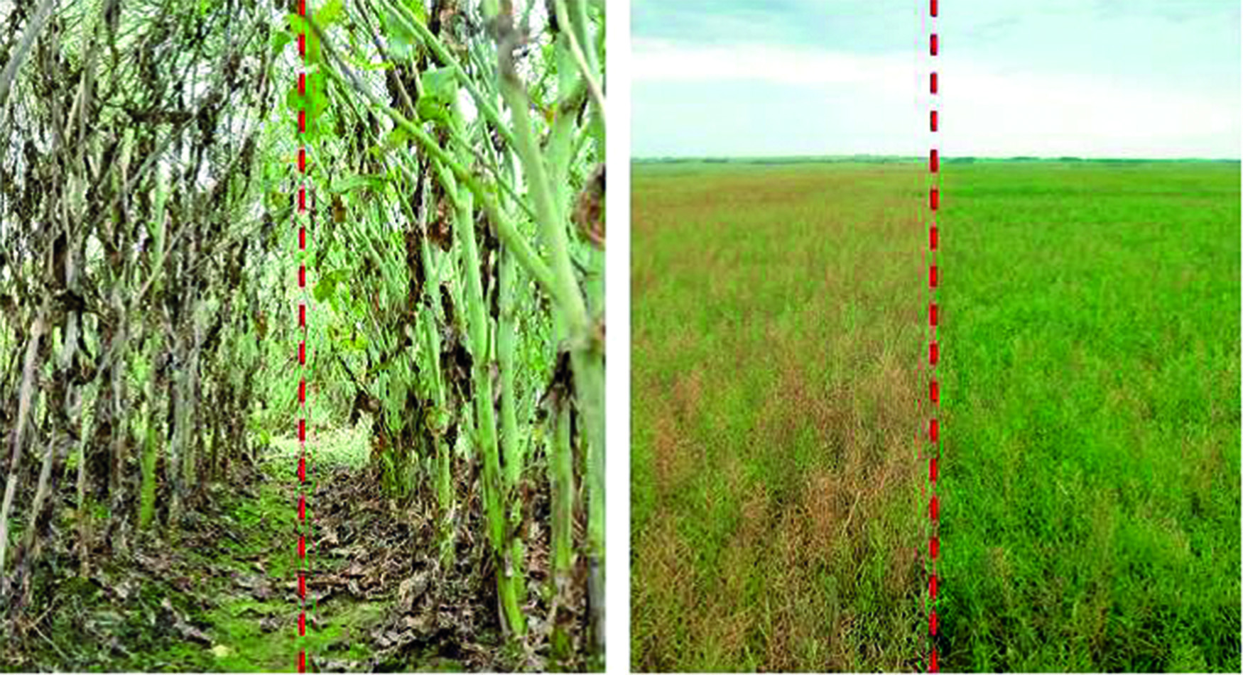 На двете снимки вляво – чувстителни хибриди, вдясно – РТ303.