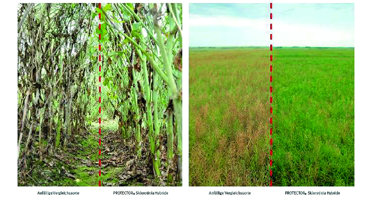На двете снимки вляво – чувстителни хибриди, вдясно – РТ303.
