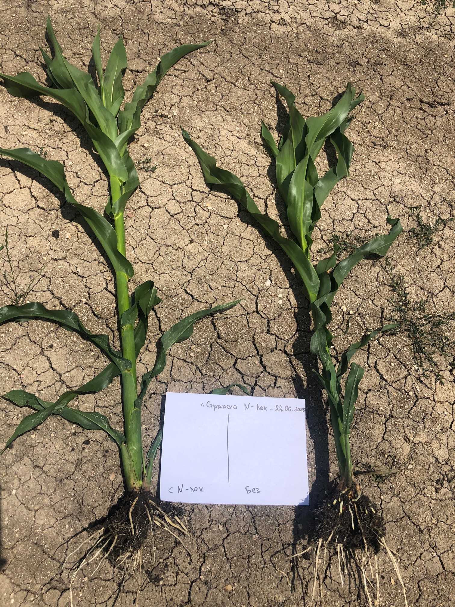 вляво Optimum® AQUAmax®хибрид (все още зелен), вдясно конвенционален хибрид (прегорял)
