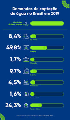 A produção agrícola depende da disponibilidade da água, e em volumes superiores à maioria das outras atividades humanas, tanto na agricultura de sequeiro e, com ênfase maior, na agricultura irrigada. É essa demanda de consumo elevado, combinada com o crescente cenário de escassez que determinam a exigência de uma atenção para o uso mais eficiente da água.
