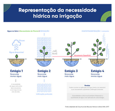 Cada cultura requer uma quantidade diferente de água e isso também vale para o tamanho da propriedade e a região em que ela está localizada. Além de variar entre as culturas, a quantidade de água também é diferente entre as fases do desenvolvimento das plantas.