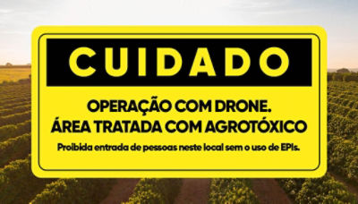 Essa distância vale, inclusive, para os profissionais envolvidos na aplicação. Uma placa visível deve ser fixada para avisar pessoas que não estão envolvidas na atividade, com a seguinte expressão: "CUIDADO! OPERAÇÃO COM DRONE".