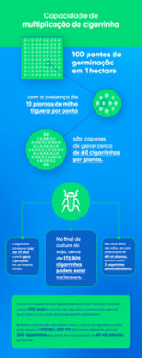 Com esses dois exemplos, fica fácil visualizar o grande poder de multiplicação da cigarrinha. Sendo assim, se o milho tiguera não for controlado, há uma grande possibilidade do novo cultivo já iniciar com uma alta pressão de cigarrinha.