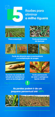 Não controlar o milho tiguera faz com que essas plantas sirvam de hospedeiras para reprodução das cigarrinhas. Assim, quando a cultura da soja for colhida e a nova safra de milho ocupar a área, o produtor, provavelmente, já terá a presença dessa importante praga na sua lavoura de milho.