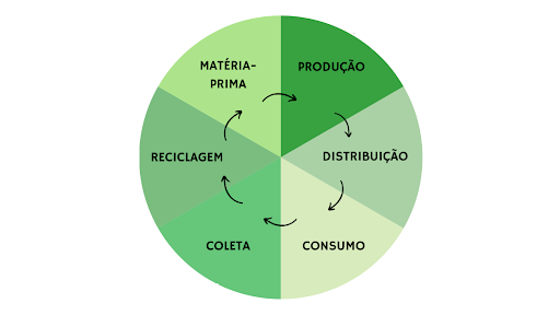 Já na economia circular, como o próprio nome já indica, existe um ciclo, não existindo um fim, ou seja, o foco dessa economia é sempre suprir o desgaste ambiental causado pela produção de um produto ou serviço, diminuindo os impactos negativos das ações.