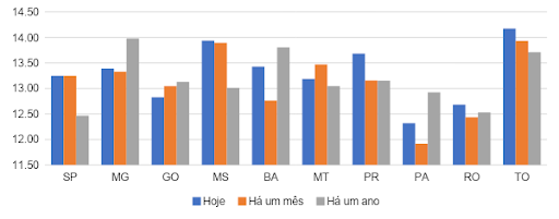 Em Minas Gerais, Goiás, Bahia e Pará, para a troca com o boi magro, o cenário foi semelhante (figura 4). É evidente que há uma queda no poder de compra, destacando a necessidade de uma gestão precisa dos custos para garantir negociações favoráveis a curto prazo.