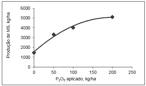 Produção da matéria seca da forragem, em kg/ha, com a adubação de fosfato.
