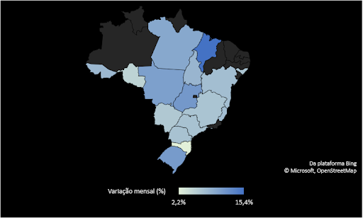 Variação (%) do preço do boi gordo nos últimos trinta dias.