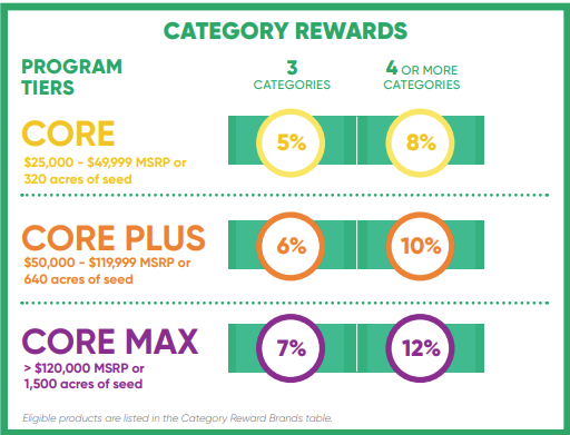 Corteva Flex+ Rewards is designed to be flexible. All growers, regardless of farm size can participate. You have the power to choose from each category, and to switch products within a category.