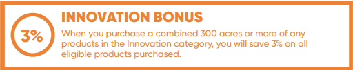 Up to 18% savings paid on these products. (Minimum 300 acres per category)