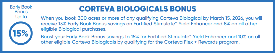 Refer to the 2026 Corteva Flex + Rewards Terms and Conditions for full program details.
