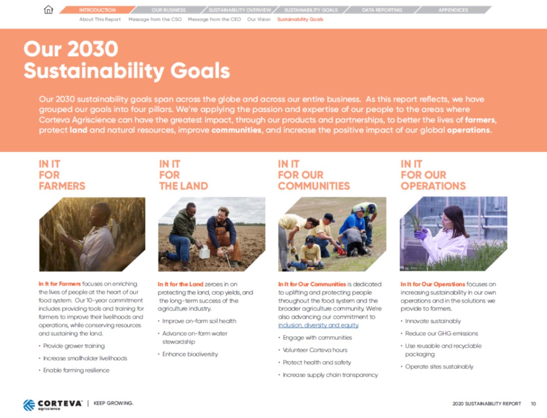 在宣布气候战略的同时,科迪华在其首份可持续发展报告(2020)当中强调了可持续发展目标,以及公司为实现这些目标投入的努力。