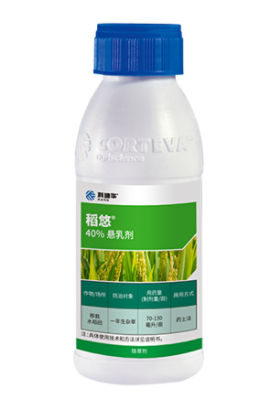 稻悠®为两个不同作用机理除草剂的预混剂,用于水稻移栽田栽后芽前封闭处理、对刚出的杂草幼苗同样有效。可有效防除水稻田中的稗草(包括稻稗)、一年生阔叶草和一年生莎草等杂草。其有效成分五氟磺草胺已经进入“绿色食品农药使用准则”目录,为绿色食品生产资料。