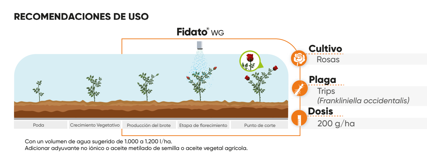 Fidato® WG es un nuevo insecticida, mezcla de dos ingredientes activos, Isoclast™ active (Sulfoxaflor) y Jemvelva™ active (Spinetoram), para el control de combinaciones de plagas como trips, lepidópteros, áfidos, dípteros, entre otras. Respeta al cultivo, al aplicador y a la fauna benéfica, (se sugiere seguir las recomendaciones de la etiqueta) además permite optimizar costos por su amplio espectro y baja dosis de uso.