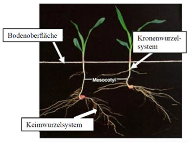 Die Auflaufgeschwindigkeit hängt nicht unbedingt mit der Höhe der Saattiefe zusammen. Korn welches auf 5cm abgelegt wurde, durchstieß in Versuchen von Pioneer auf tonigem Boden früher die Erdoberfläche als flacher abgelegtes Korn. Der Grund war der bessere Bodenkontakt in 5cm Tiefe. Die Pflanzen wurden optimaler mit Wasser und Nährstoffen versorgt. In diesem Experiment waren bei insgesamt kühlen Temperaturen während des Auflaufens die Temperaturen in 2cm und in 5cm Bodentiefe gleich hoch.