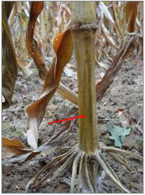 Stängelfäule kann den Stängel der Maispflanze gravierend schädigen.