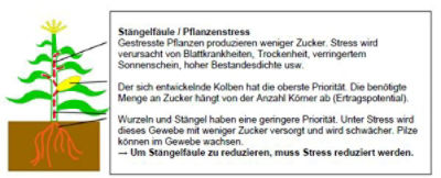 Da in erster Linie Stress der Faktor für das Ausbrechen der Stängelfäule ist, sollte dieser mit einem guten Anbaumanagement so gering wie möglich gehalten werden: