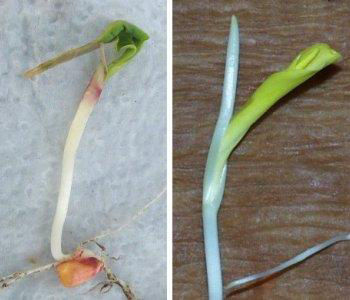 a. Wenn das Korn zur Keimung kaltes Wasser (kälter als 10°C) aufnimmt, kann es zu Kälteschäden kommen (siehe Abbildungen unten).