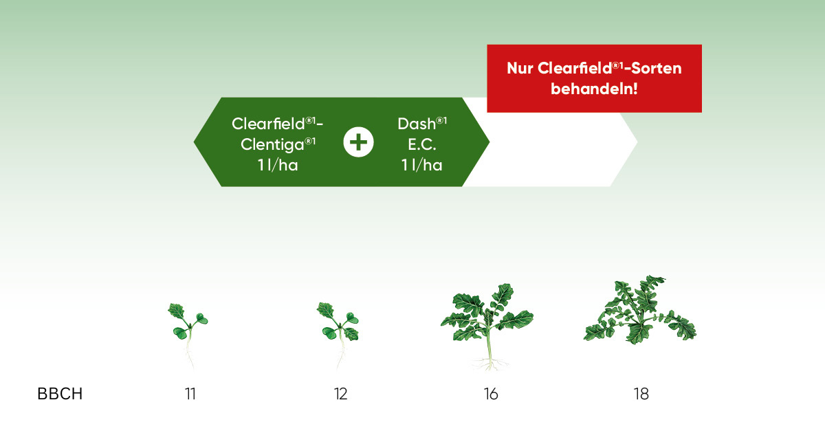 Das CLEARFIELD Produktionssystem für Raps ist die Kombination aus CLEARFIELD Rapssorten und einem hochwirksamen CLEARFIELD Herbizid.