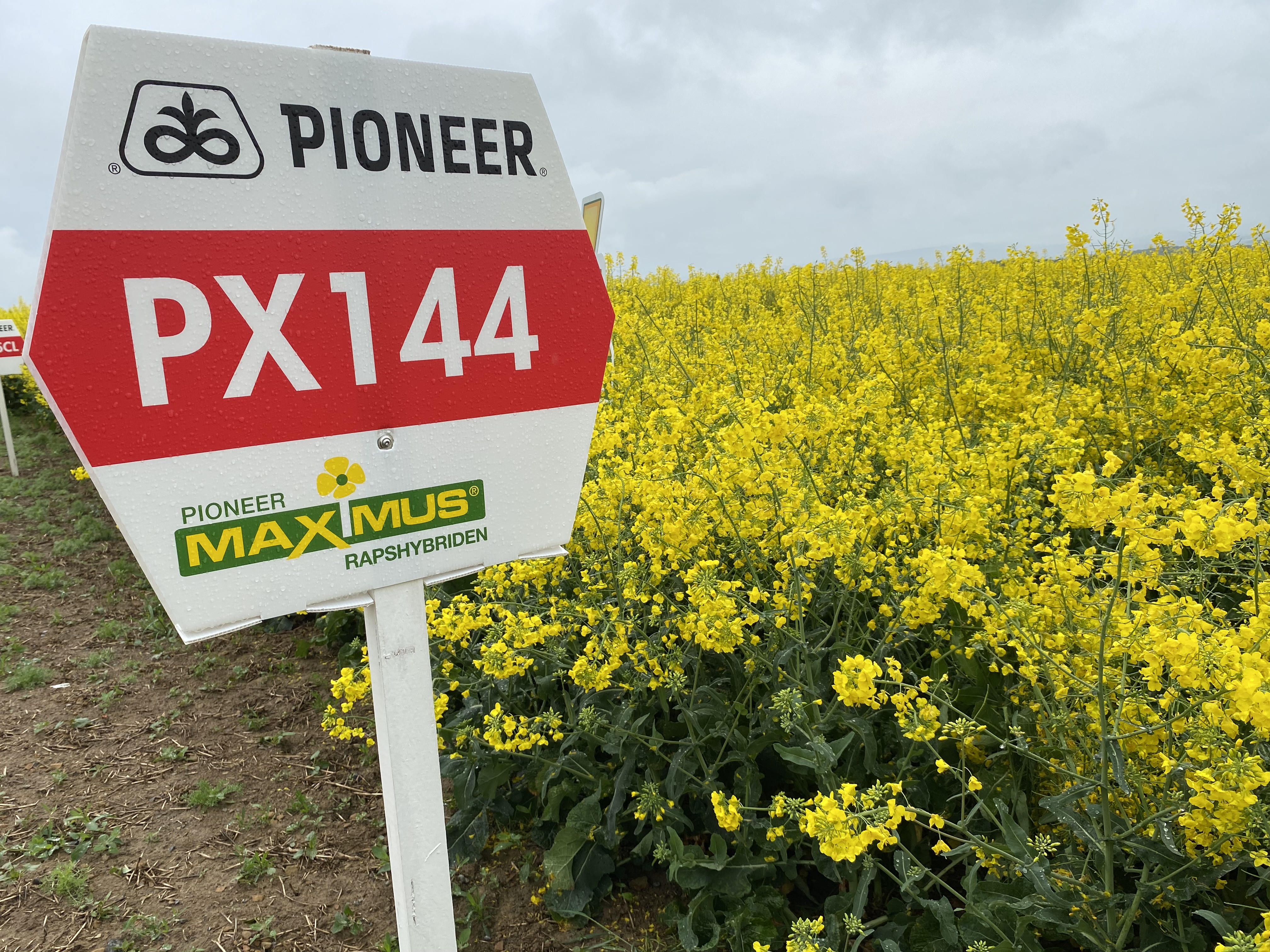 PX144 wurde im März 2023 in Dänemark zugelassen. Durch die Kombination aus sehr hohem Kornertrag und hohem Ölgehalt besticht die Hybride mit einem sehr hohen Ölertrag. Vor Winter entwickelt sich PX144 zügig, startet aber im Frühjahr etwas früher als PX128. Sie zeichnet sich durch eine gute Phoma- und Sklerotiniatoleranz aus und lässt sich bei früher Strohabfreife und mittlerer Kornreife sehr leicht dreschen.