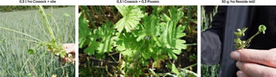 Storkenæb er en ukrudtsark som er i fremgang og i flere af vores afprøvninger indgik storkenæb. I Rexade har både Primus og specielt Arylex rigtig god effekt mod storkenæb. På billederne herunder ses hvordan Rexade 440 har langt bedre effekt en de SU-baserede løsninger. Storkenæb optræder hyppigt på milde jordtyper hvor vinterrug er en velegnet afgrøde. Rexade passer derfor særdeles godt ind i vinterrug hvor den også er yderst skånsom overfor afgrøden.