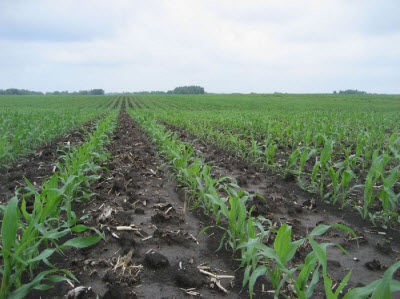 Imagen 1. Campo de maíz con suficiente nitrógeno en V5. La mayoría del nitrógeno se aplica al maíz bastante antes del período de máxima absorción del cultivo (de V8 hasta la aparición de espiguillas).