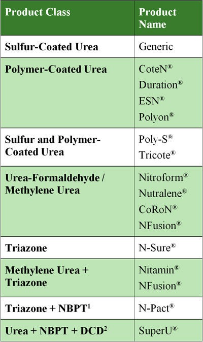 Los productores de cultivos en hileras de Estados Unidos o Canadá disponen actualmente de varios productos de nitrógeno de liberación controlada (Tabla 1).