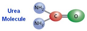 La molécula de la urea tiene 2 grupos de amidas (NH2) unidas por un grupo carbonilo funcional (C=O).