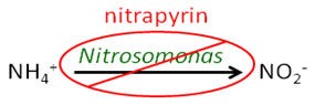 La nitrapirina, o 2-cloro-6 (triclorometil) piridina funciona, inhibiendo y debilitando la actividad de las bacterias Nitrosomonas . En comparación con otros productos, la nitrapirina tiene un efecto bactericida que realmente mata parte de la población de Nitrosomonas en el suelo. Por tanto, es efectiva hasta que la población de bacterias se reproduzca en la zona de aplicación y difusión. Esta actividad bactericida es muy específica de las Nitrosomonas.