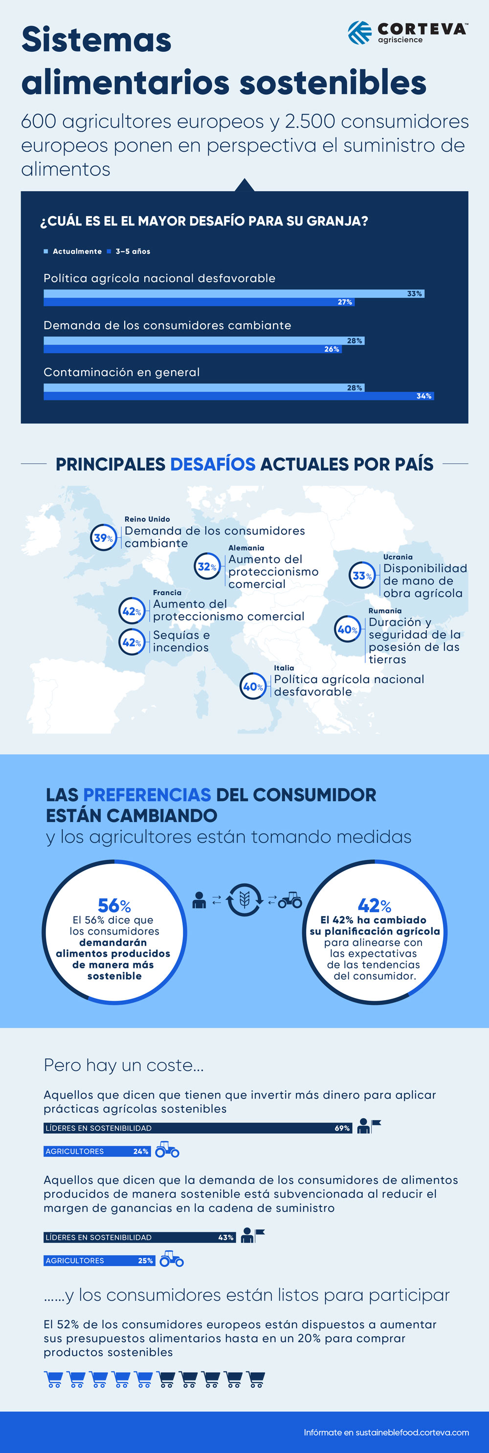 Igor Teslenko, presidente de Corteva Agriscience, Europa, declaró: “Este estudio demuestra que existe una necesidad real de una producción alimentaria más sostenible en Europa. Corteva Agriscience está bien posicionada para apoyar conversaciones bilaterales sobre agricultura sostenible, trasladando no solo la perspectiva del consumidor al agricultor, sino también la voz del agricultor al consumidor”.