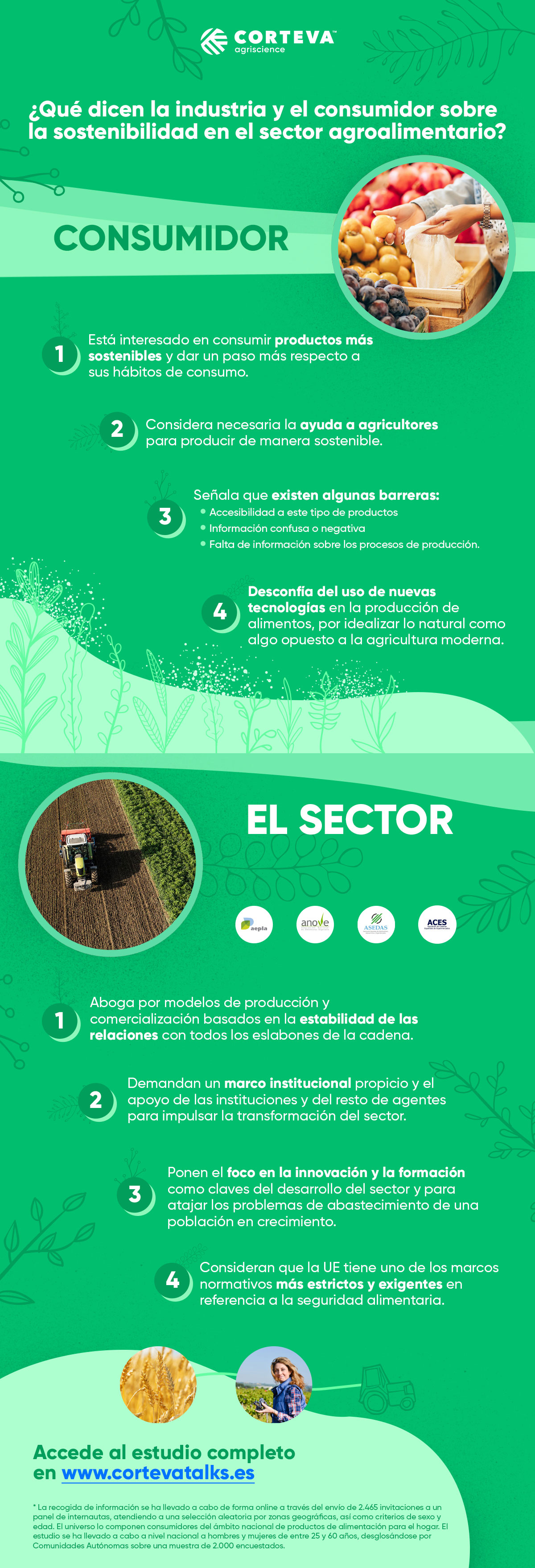 Sevilla – 17 de septiembre de 2020. Corteva Agriscience, compañía referente en el sector agrícola en tecnología de semillas, protección de cultivos y agricultura digital, ha elaborado un informe, La sostenibilidad en el sector alimentario: un reto de todos con el fin de conocer al consumidor, sus demandas, las tendencias existentes relacionadas con el consumo de alimentos producidos de forma sostenible.