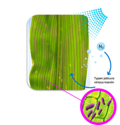 BlueN on biostimulantti. Luonnollinen bakteeri, Methylobacterium symbioticum, sitoo typpeä ilmasta ja muuntaa sen kasville käyttökelpoiseksi.
