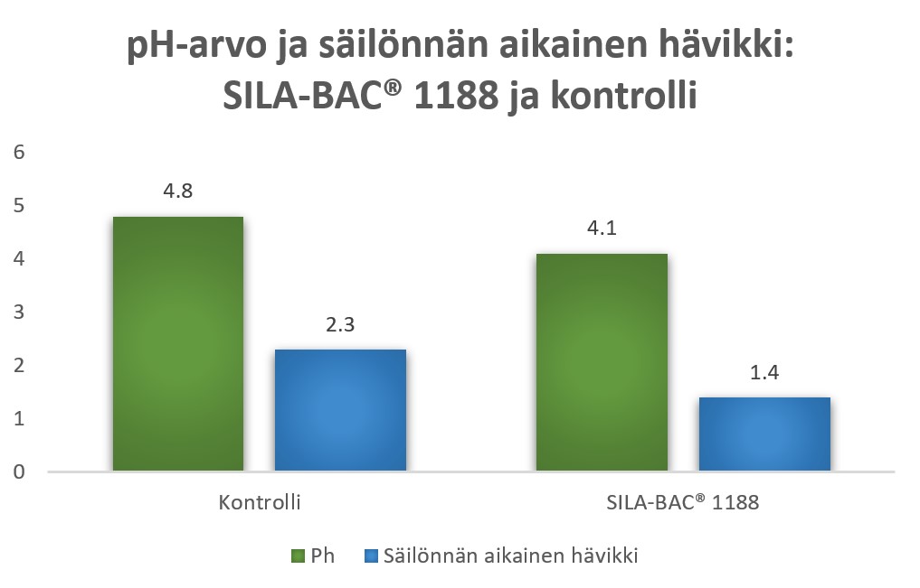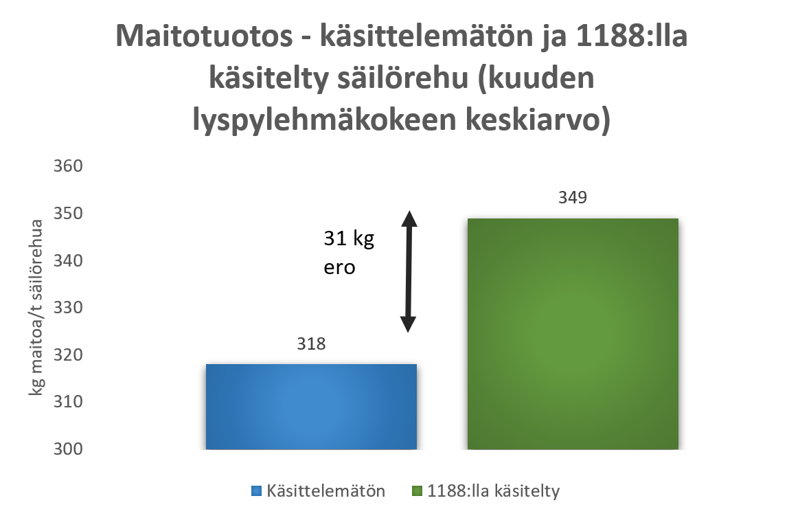 SILA-BAC® 1188 varmistaa säilörehun laadun. Käsitellyn säilörehun on osoitettu parantavan maitotuotosta käsittelemättömään säilörehuun verrattuna.