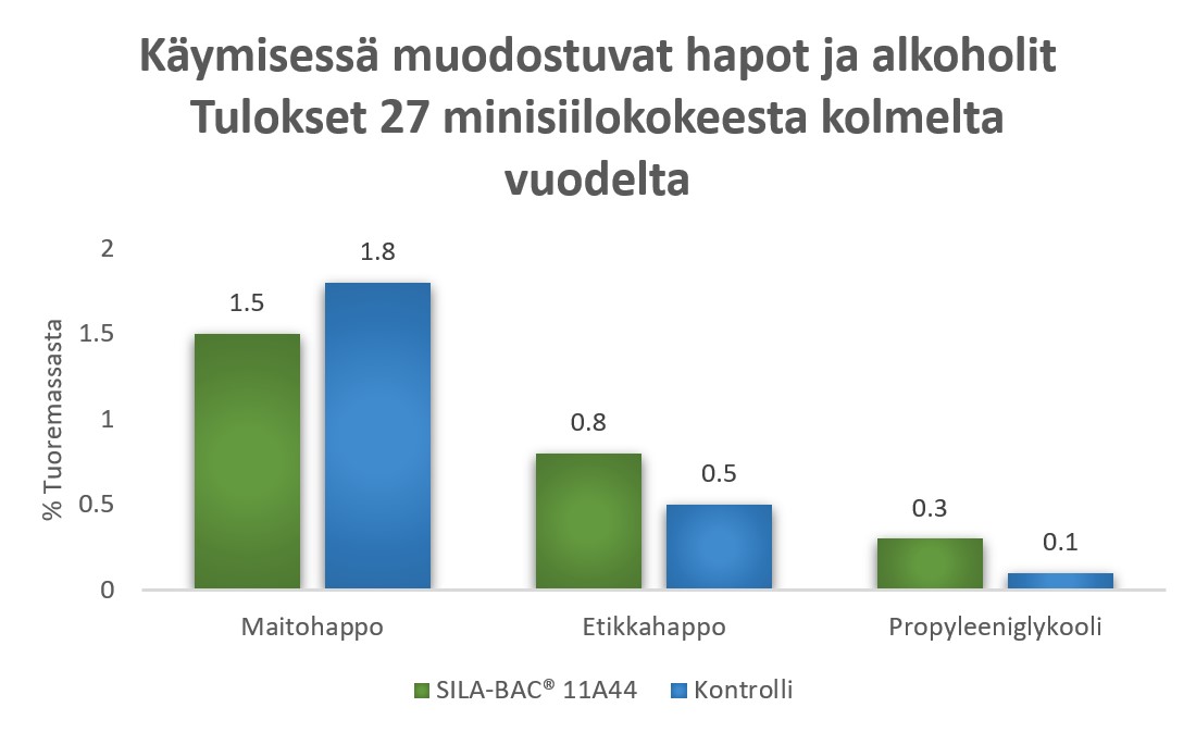 Homofermentatiiviset maitohappobakteerit muuttavat sokereita maitohapoksi säilönnän aikana, kun taas heterofermentatiiviset bakteerit (SILA-BAC® Stabilizer 11A44) tuottavat maitohapon lisäksi hieman etikkahappoa, propyleeniglykolia ja hiilidioksidia. Säilörehun maltillinen etikkahappopitoisuus vähentää hiivojen ja homeen kasvua rehun syöntiä heikentämättä. Rehun aerobinen stabiilius paranee eli rehumassan altistuessa hapelle sen lämpötila ja kuiva-ainepitoisuus pysyvät stabiilina pidempään.