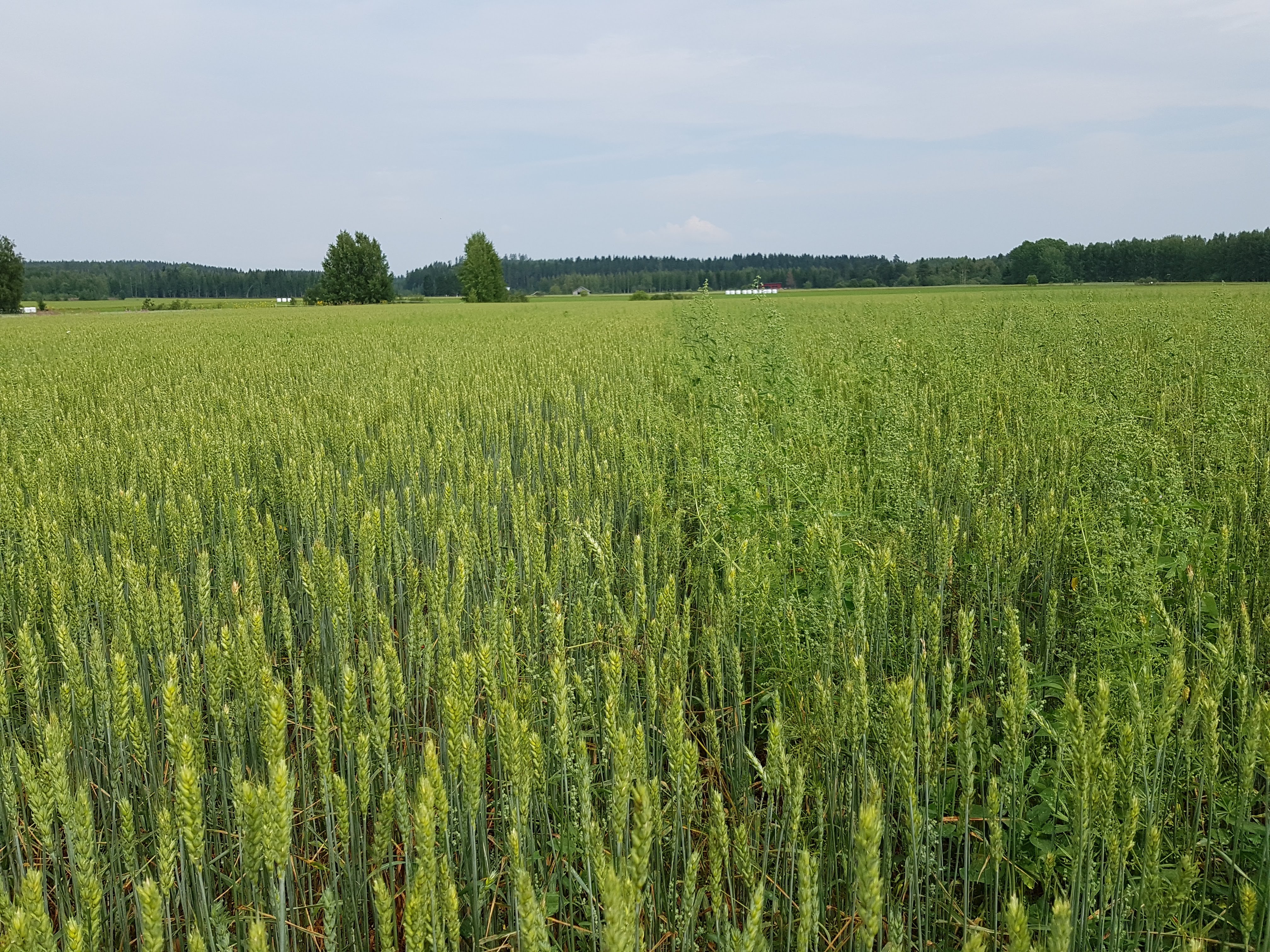 Rikkatorjunta myöhästyi tällä lohkolla ja se tehtiinkin vasta kasvuasteella BBCH 45 eli vain vähän ennen tähkän esilletuloa. Koska torjunta oli myöhäinen ja rikkakasvit jo kookkaita, Zyparin annoksena käytettiin täyttä litran annosta per hehtaari. Myöhäisestä torjunta-ajankohdasta huolimatta torjuntatulos oli erinomainen. Alla olevassa kuvassa on vasemmalla Zypar käsitelty alue ja oikealla ruiskuttamaton, joka on täynnä erityisesti mataraa ja savikkaa.