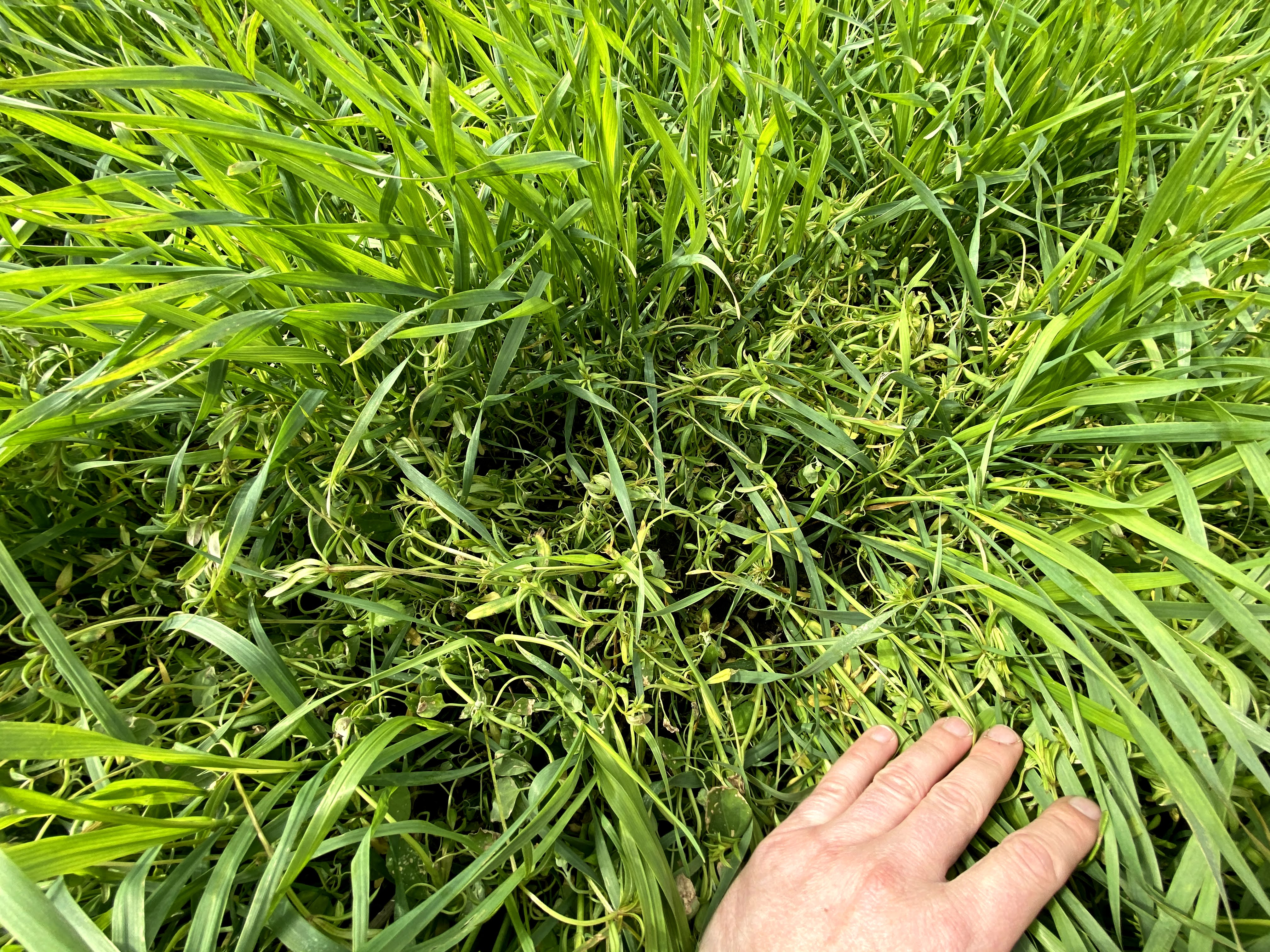 Kuva 1: Lohkolla oli paikoin erittäin runsaasti mataraa, mutta jo hyvin pian ruiskutuksen teho matarassa oli nähtävissä.