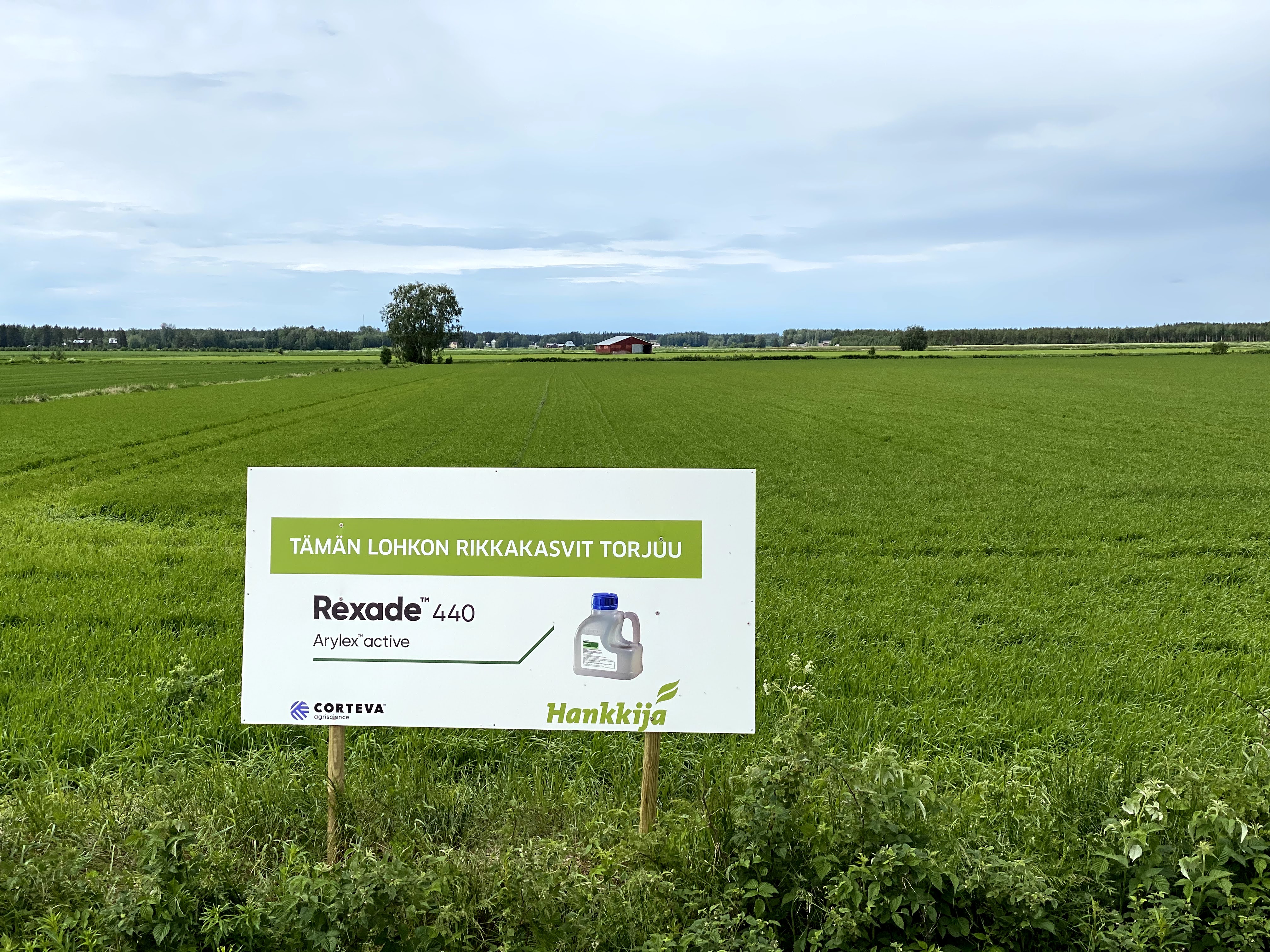Kuva 4: Lohkolla oli kesän ajan kyltti kertomassa käytetystä valmisteesta.
