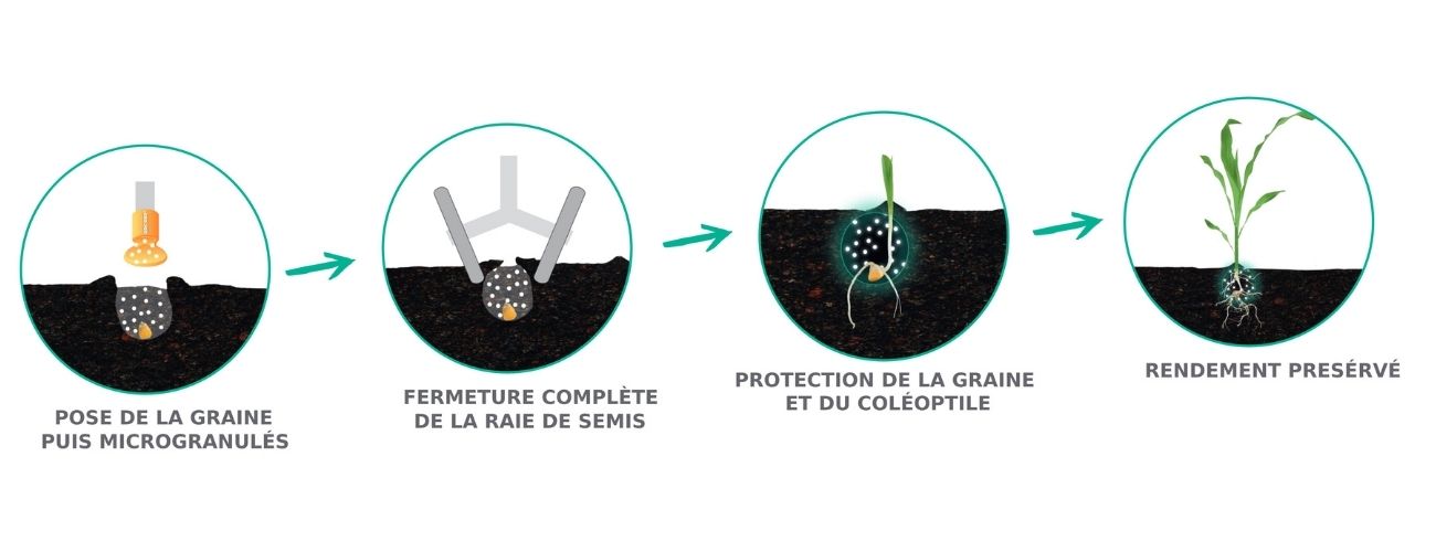 À base de spinosad, principe actif autorisé en agriculture biologique, Success™ GR est distribué par un microgranulateur pour former un bouclier de protection autour de la graine de maïs et du coléoptile.