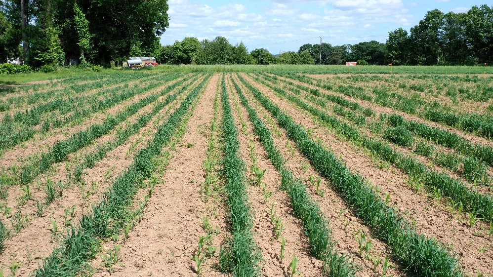 Exemple d’une bonne installation de l’avoine en inter-rang du maïs.