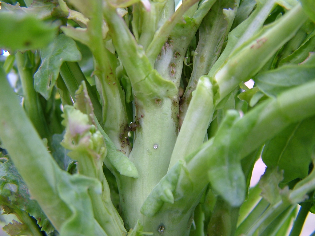 Szárormányos bogár imágójának tojásrakási helye a repce szárán.