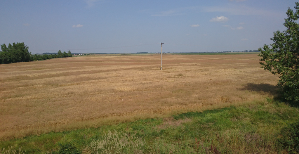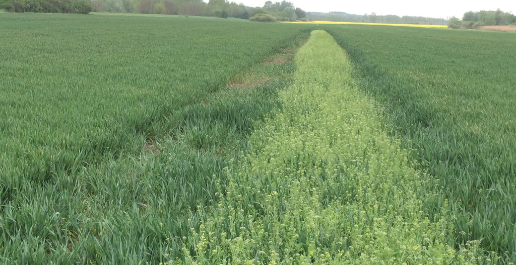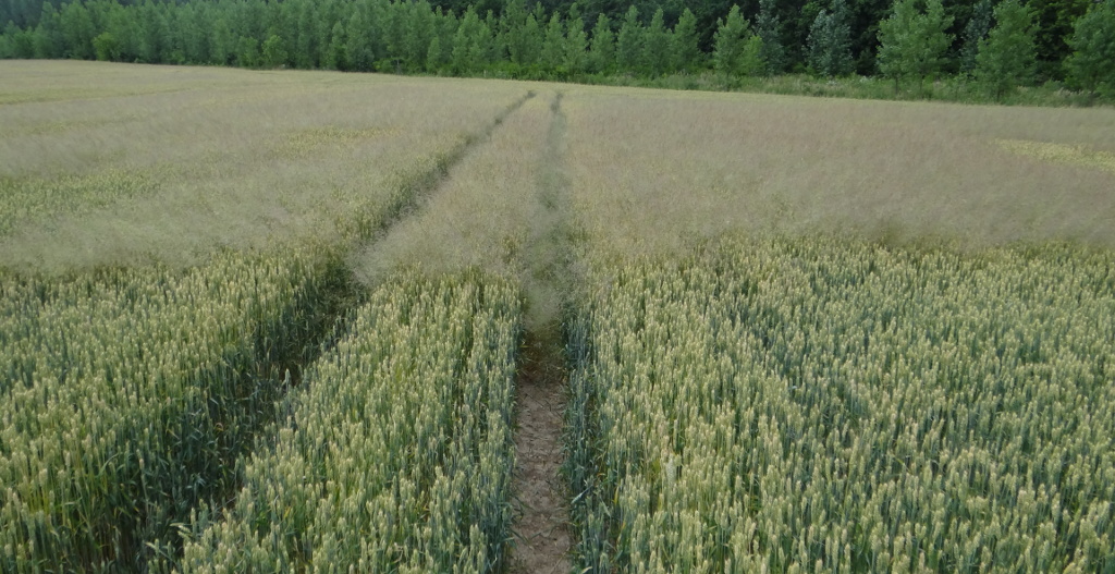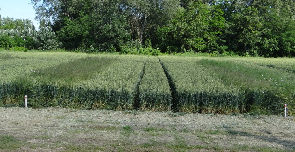 Előtérben ősszel Bizon™-al kezelt terület, háttérben más hatóanyagokkal ősszel kezelt és tavasszal felülkezelt terület. Tiszatelek 2015 június 17.