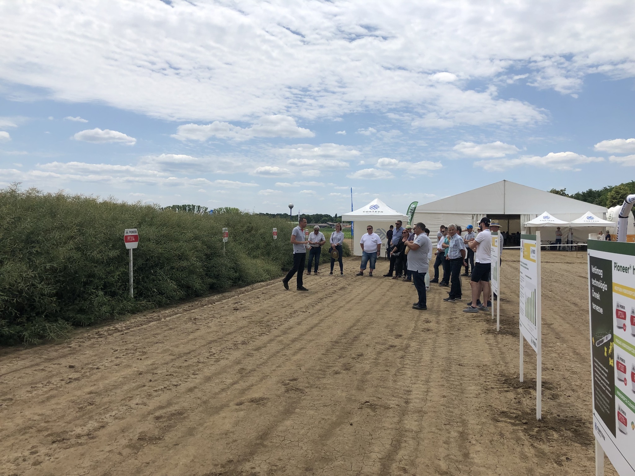 A vállalat Pioneer® NextGen repce hibridjei közül nagy érdeklődés övezi a PT314 és PT315 Pioneer® repcéket. A bemutatókon egyértelműen látható volt e két hibrid erőteljes megjelenése, megdőlésre nem hajlamos erős szára, és szembetűnő volt a becők nagy száma, amely alapja a kiugró termésszintnek. A NextGen hibridek kimagasló pergésellenállását egy új gén (HMX) biztosítja, ezáltal csökken minimálisra a felnyíló becők száma az érés során. A PT314 és PT315 kiváló olajtartalma szintén segíti a termelőt a hatékony termelésben. A rendezvényen bemutatásra került még a szintén új PT302 hibrid, amelynek kiemelendő tulajdonsága a széleskörű adaptációs képessége, és amely alacsonyabb növényállományával hívta fel magára a figyelmet. A termelők megtekinthették a már nagyfokú elismertségnek örvendő PT298 és PT303 őszi káposztarepcéket is, hiszen ezek a hibridek továbbra is szerepelnek a vállalat kínálatában. Jól látszott a PT303 egészséges növényállománya, hiszen kiváló kórtani tulajdonságai vannak, köszönhetően főként a ténynek, hogy a Sclerotinia ellen genetikailag megalapozott toleranciával rendelkezik a hibrid. A PT298 pedig egyöntetű állományával igazolta a jó kórtani jellemzőit és termésstabilitását.
