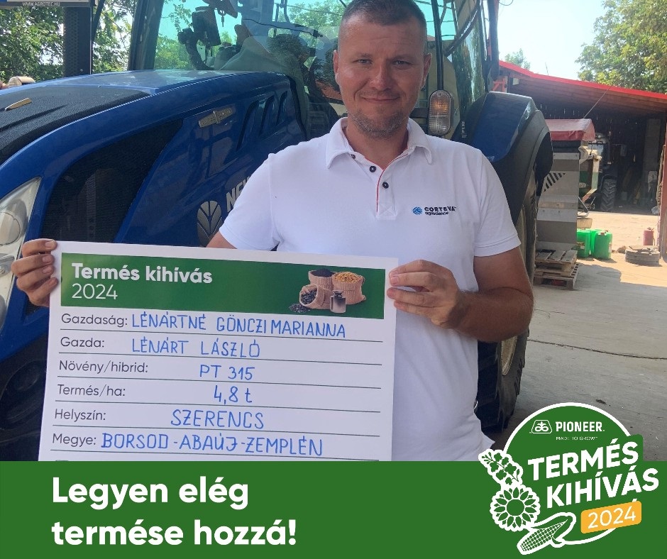 Lénárt László, Borsod-Abaúj-Zemplén vármegyei szerencsi gazdálkodó, aki a legmagasabb, 4,8 t/ha terméshozamot érte el őszi káposztarepcében, így nyilatkozott eredményéről: „A Corteva szaktanácsadói ajánlására választottam a PT315-ös hibridet, mint új, széles adaptációs képességű HMX (Harvest Max) tulajdonságot tartalmazó repce hibridet. Korábban nem használtam Pioneer® hibridet, most azonban megtapasztaltam kiváló stressztűrőképességét, pergés-ellenállóságát. Forgatásos talajművelést alkalmazok, melyhez okszerű tápanyag-gazdálkodás és növényvédelem társul. A tenyészidőszak alatt folyamatosan figyelemmel kísértük a hibrid állapotát és megállapítottuk, hogy ígéretes termésnek nézünk elébe, mely akár a Pioneer® Termés Kihívásban is megállhatná a helyét. Sikerült!”